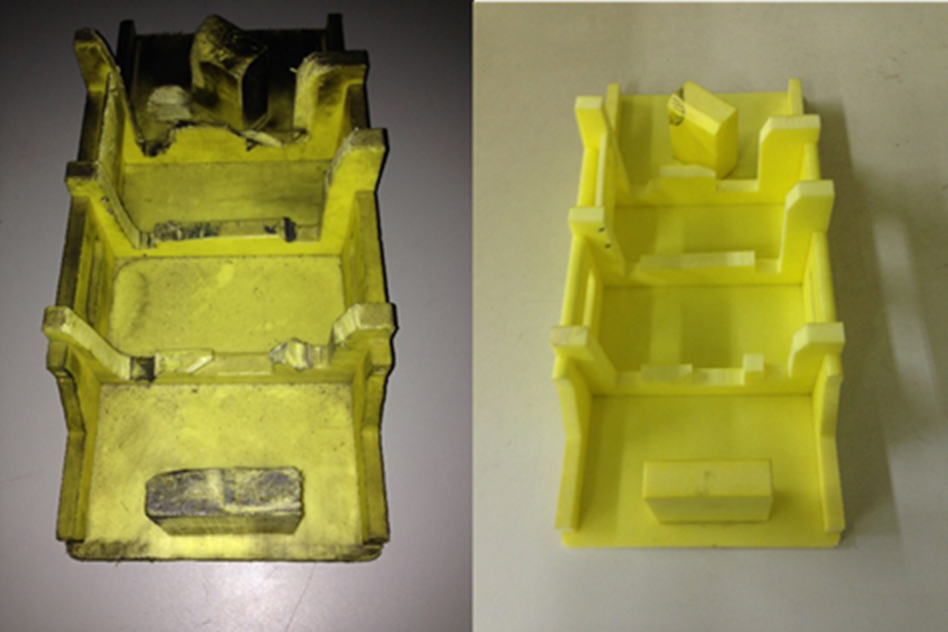 問題解決事例 【問題】樹脂製品が磨耗により原型がなくなってしまった。図面がないけど復元できないか。 【解決】樹脂製品とワークがあれば、採寸→試作→製品化といった手順で製作します。ワークとの干渉確認はもちろん、使い勝手を改善したいなどの要望にもお答えします。その他、MCナイロン、塩ビ、ウレタンゴムなども対応可能です。 ・デュラウッド加工品 ・アイセルウッド加工品